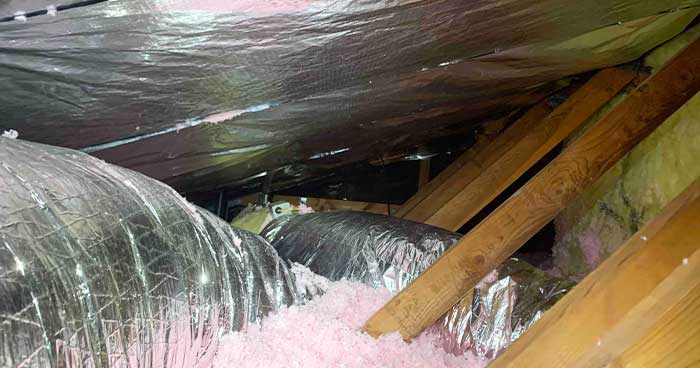 Now think of that extreme heat in your attic. Not only can it degrade your ducts and HVAC system, that heat can also transfer to insulation which then goes down into your home.